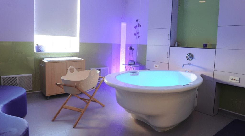 Our Water Birth Suite offers a calm, comfortable space with a warm birthing pool, supporting a natural, relaxing labor experience for a safe and peaceful delivery.